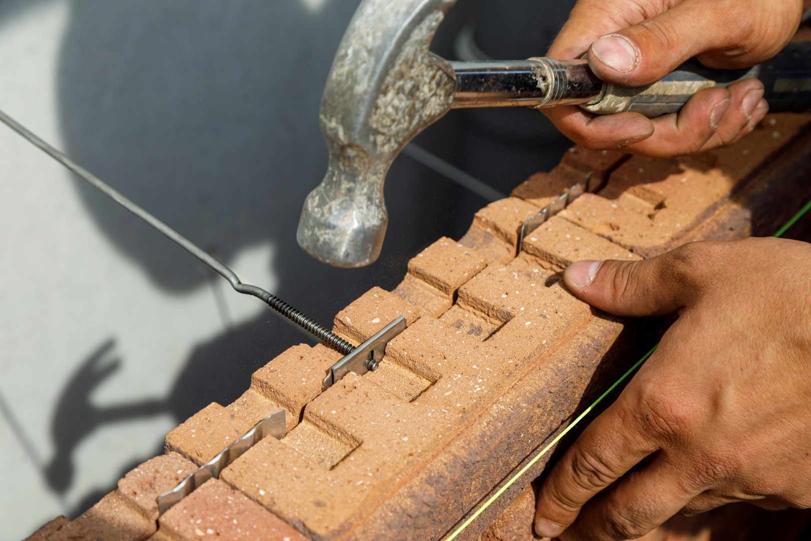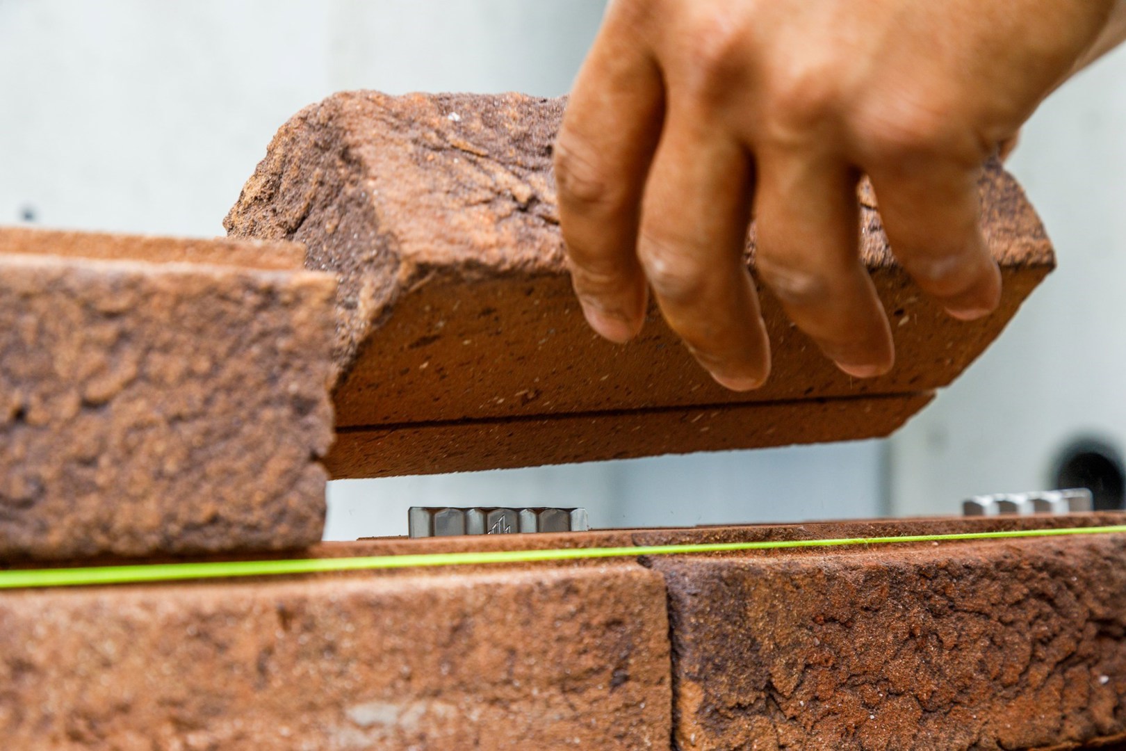Les clips de connexion sont utilisés pour empiler les briques à sec les unes sur les autres. Les ancrages en acier inoxydable sont fixés au moyen d'un crochet d'ancrage en acier inoxydable dans les évidements des briques de parement ClickBrick Pure. En raison du calibrage précis des briques sur les faces inférieures et supérieures et parce qu'aucun joint en plastique susceptible de se déformer n'est utilisé entre les briques, il n'y a également aucun dégradé visible dans les façades.