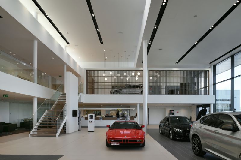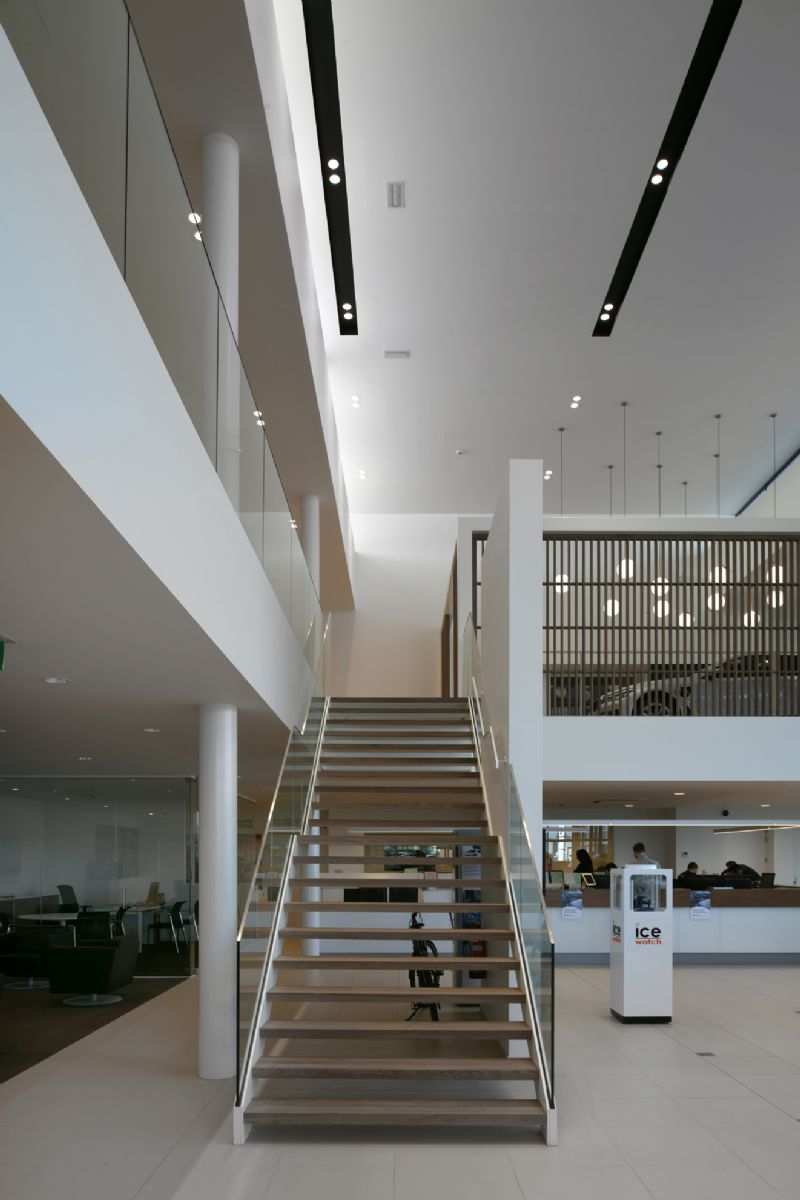 En plus d'un show-room aux dimensions extraordinaires, le site abrite les bureaux de l’équipe commerciale, les ateliers techniques ainsi qu’un car-wash équipé d’un système de récupération des pluies.