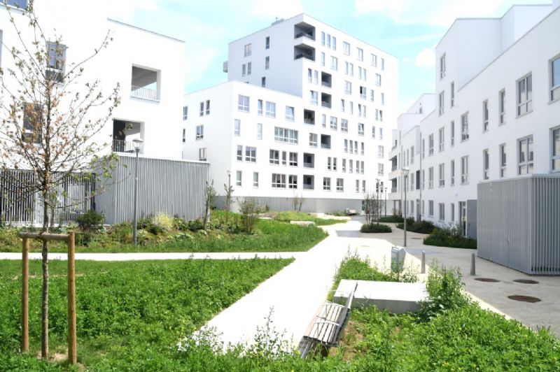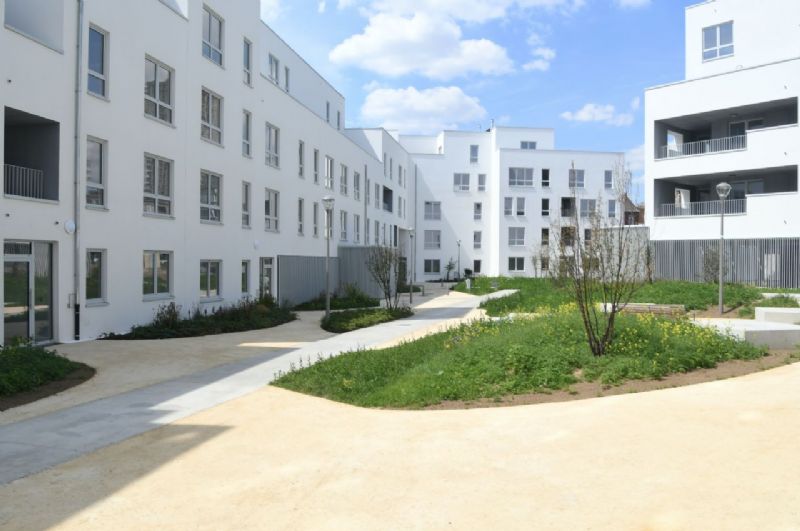 Trois nouveaux bâtiments, premières traces d'un nouvel îlot résidentiel de logements moyens et sociaux - résidences services et appartements - qui comportera à terme 165 logements et revitalisera le quartier.