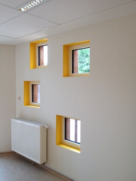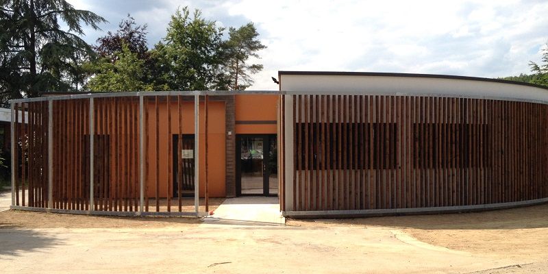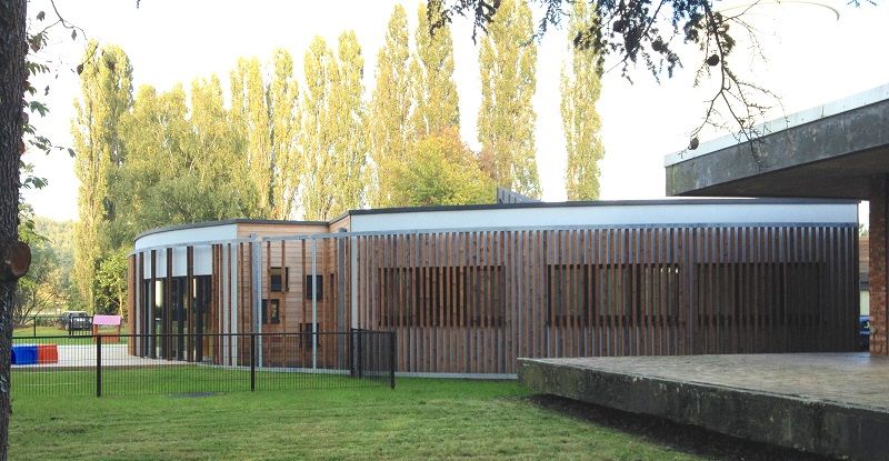 AW Architectes a livré en 2014 une extention-rénovation d'une crèche à Tihange. Le Maître de l’Ouvrage (la SPI) souhaitait agrandir les dortoirs et les espaces de jeu pour augmenter la capacité de la crèche de 25 à 48 places. L'architecte a pris l’option d’emballer le bâtiment existant et de créer une nouvelle esthétique, une peau en forme d’« œuf » autour du bâtiment. En plus de symboliser la fonction (protection, vie, parc d’enfants en rondins, …), le bardage entourant l’ensemble unifie le tout et donne une image forte au bâtiment.
