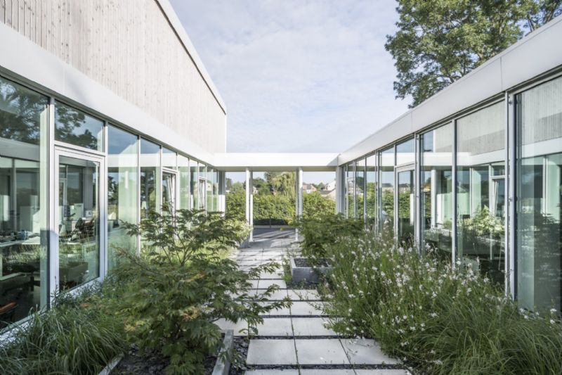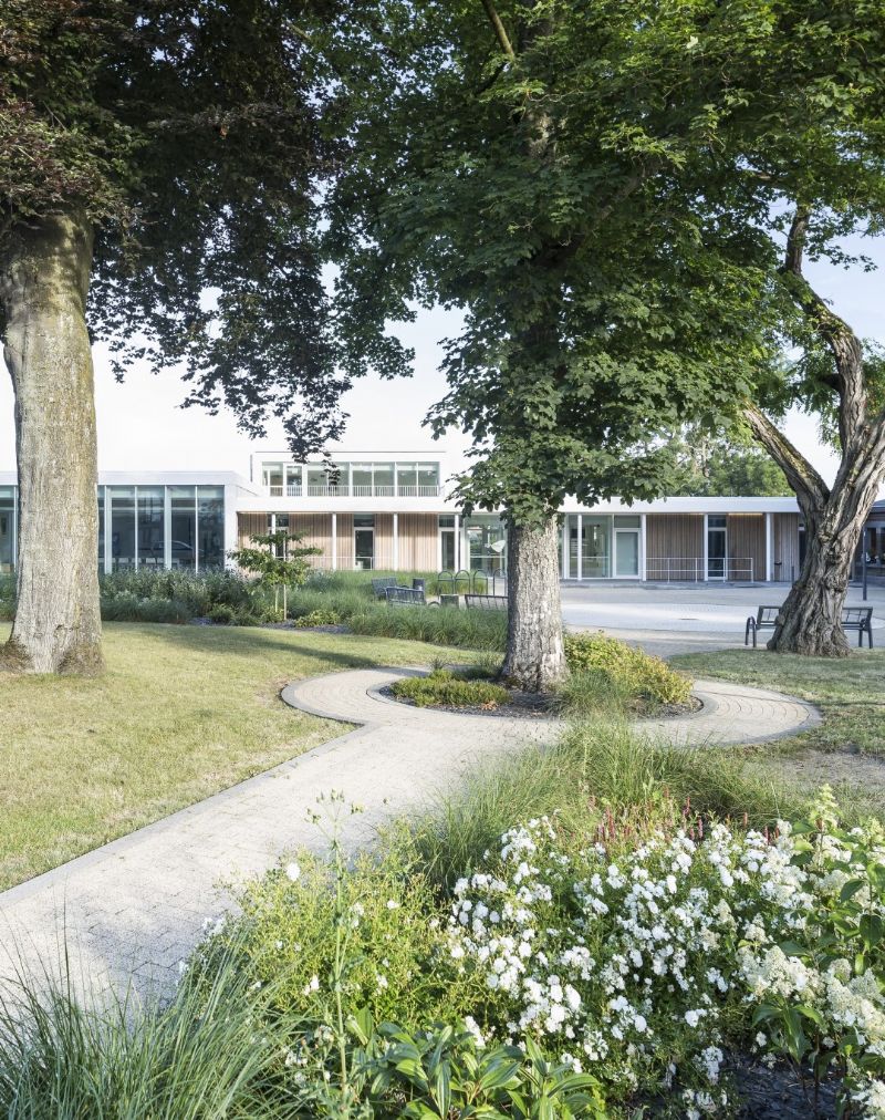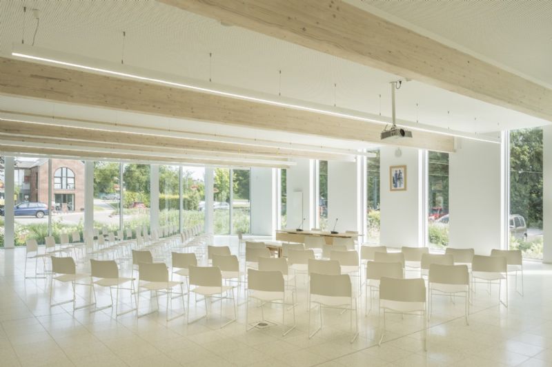 L’enjeu réside dans l’articulation et le dialogue avec les infrastructures existantes, à savoir une juxtaposition d’éléments hétéroclites. On trouve tout d’abord le « château », ensuite une première extension des années 80 et enfin une deuxième extension. L’enjeu principal est dès lors de requalifier le site afin de recréer un ensemble cohérent. La proposition d'extension doit profiter de l'opportunité d'apporter une réflexion cohérente sur l'ensemble du complexe administratif à une échelle plus large. Le projet propose une lecture paysagère du bâtiment, en adéquation avec le contexte bâti et non-bâti, qui assure la transition de territoire entre la dimension rurale (et ses bocages) et urbaine, la maison communale étant située en bordure d’agglomération.