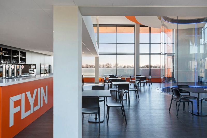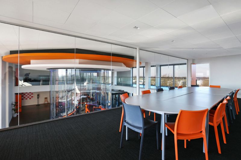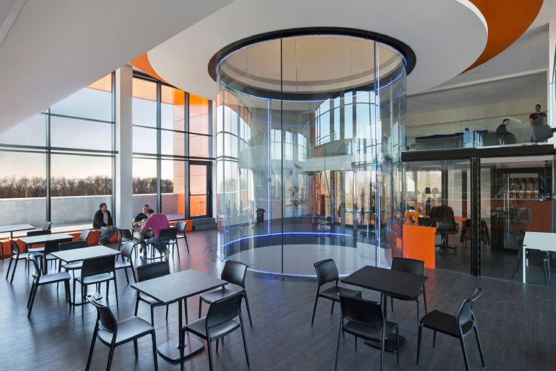 Construction sur le site de l'aéroport de Bierset d'une infrastructure sportive et administrative comprenant Skydive (le plus large simulateur de chute libre au monde), espaces polyvalents, bureaux, restaurant et bar
