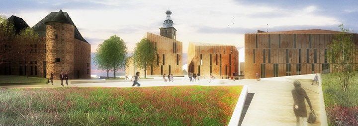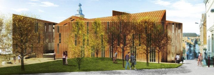 Tout en refermant l’îlot composé par les bâtiments de la place de l’Hôtel de Ville, la Grand’Rue et la rue du Huit Mai, le projet des architectes de Syntaxe associés à ceux du bureai italien Demogo redéfinit le parc d’Epinal en tant qu’espace urbain et dégage à travers des percées visuelles, des points de vue symboliques sur le beffroi et l’église décanale. Ces percées sont réalisées grâce à 2 atriums entièrement vitrés qui relient 3 blocs distincts.