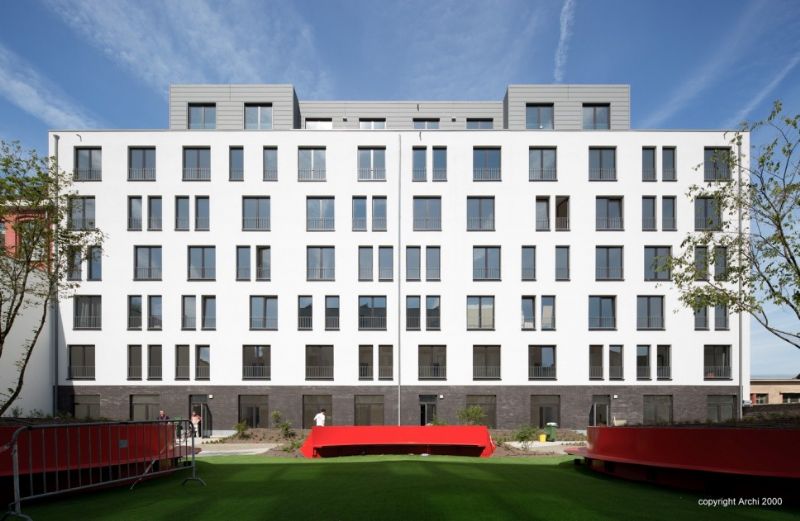 Construit sur le site des anciens établissements Ducuroir à Forest, ce projet comprend la construction de 64 logements neufs dans un ilôt arboré et paysagé. La moitié des logements est construite selon les principes du standard «passif» et l’autre moitié, pour des raisons de faisabilité technique, sur le standard «très basse énergie».