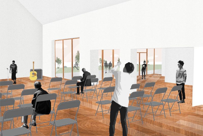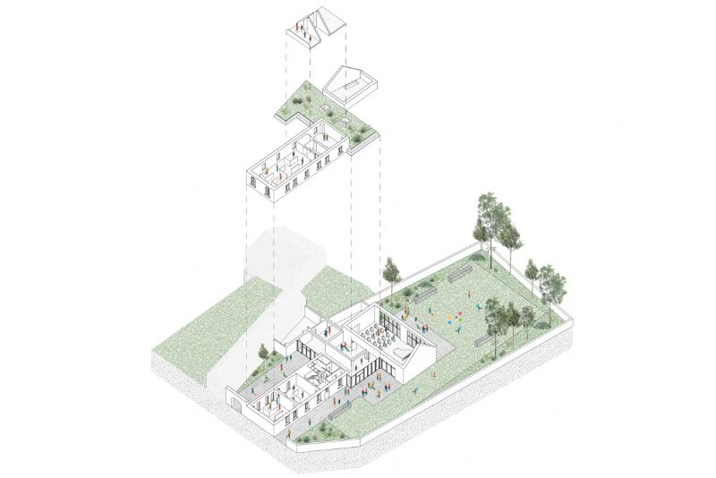 Le bâtiment fera l'objet de travaux d’éco-rénovation. L’approche environnementale est d’autant plus importante que l’intervention portera sur un site à haute valeur patrimoniale. L’ensemble du site est composé de plusieurs bâtiments se juxtaposant. D’une part, le bâtiment principal et d’autres part, les constructions arrières occupées autrefois par l’école du village. Cette partie du site offre des volumes généreux qui pourront être mis à profit pour de grands espaces polyvalents. La volonté des architectes est de proposer un agencement simple minimisant l’intervention sur le bâtiment existant.
