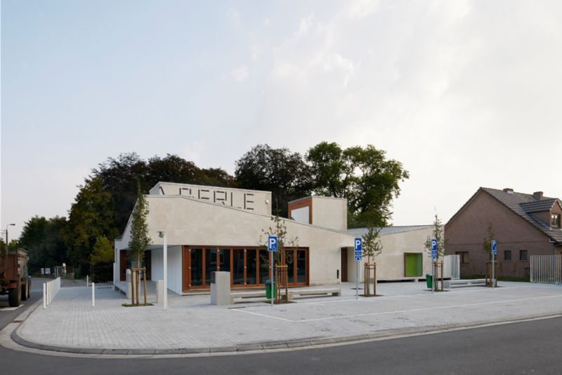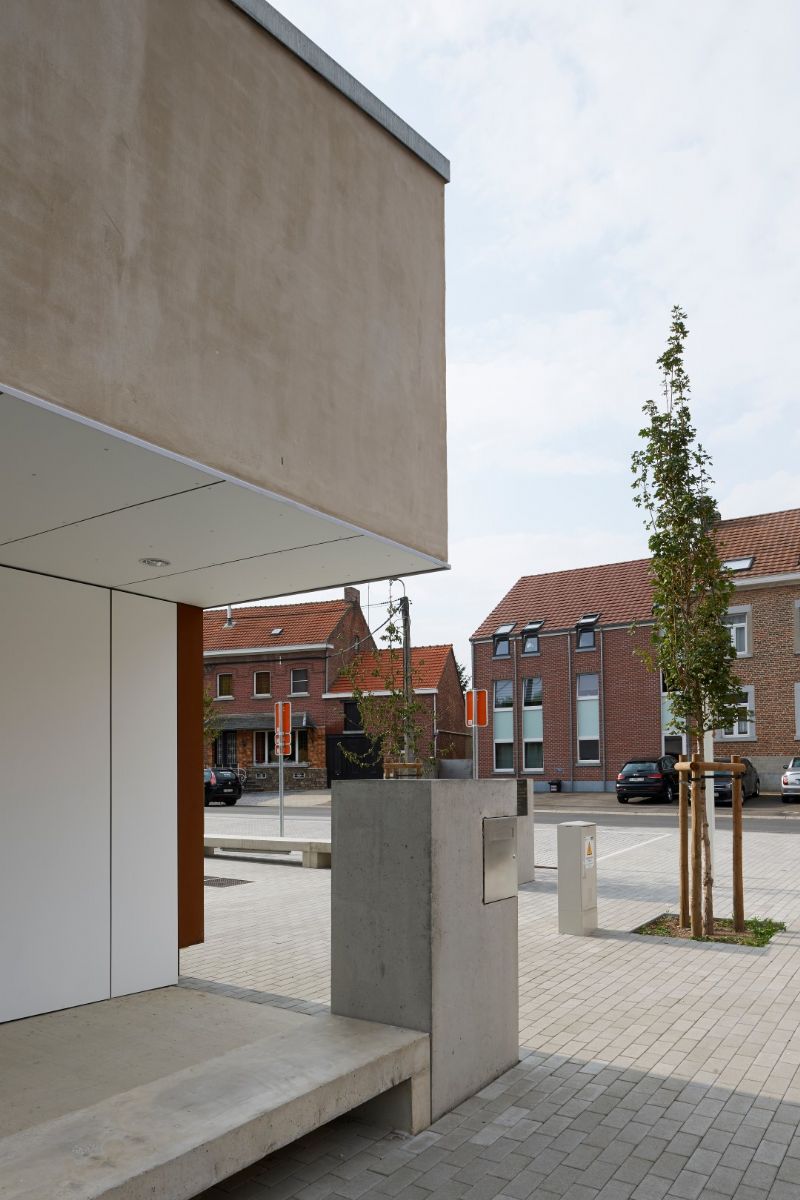 Construction d'une maison rurale multiservice au centre du village : bibliothèque, salles de réunion et des fêtes, agence de développement local et centre d’information. Lauréat du Grand Prix d'Architecture de Wallonie 2019 dans la catégorie Bâtiment public à usage collectif