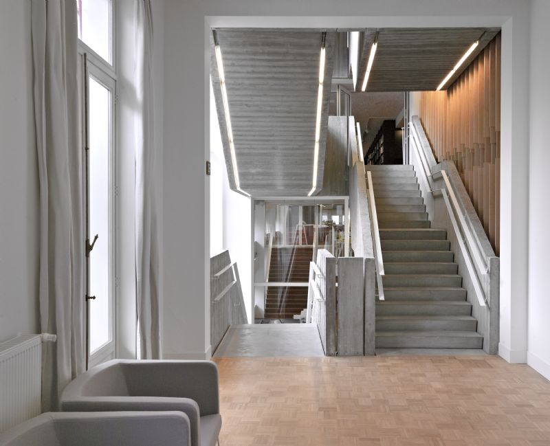 Après trois années d'intense rénovation, Muntpunt a ouvert ses portes au public au cœur de Bruxelles. Trois immeubles très différents issus de trois époques forment désormais un ensemble : la Monnaie House (un immeuble de bureaux des années septante), le Schildknaapgebouw (bâtiment de l'Ecuyer, du XIXe siècle) et un immeuble entre les deux (ancienne maison de maître). C'est B-architecten qui remporta le concours public d'architecture et transforma le tout en un seul bâtiment public.