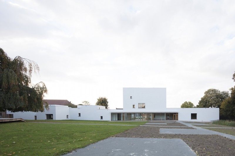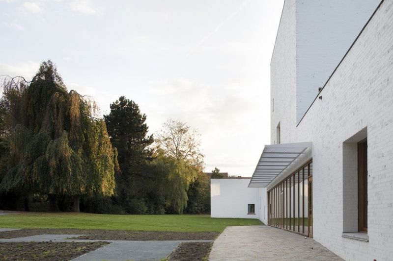 Le musée s’inscrit directement dans la prolongation en plan du bâtiment en sheds. Cette relation existe également en volume. La profondeur et la hauteur du musée sont proportionnées directement en rapport avec ce bâtiment mais aussi, par prolongation, avec tout le patrimoine industriel mouscronnois. La mise à l’horizontale du musée a permis de placer tous les espaces adressés au public au rez-de-chaussée, en connexion visuelle et physique avec le parc. Au-delà de cette prise position architecturale le projet a également été accompagné de la proposition d’intégrer le travail d’un artiste, Simon Boudvin.