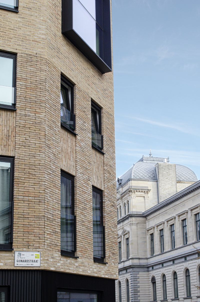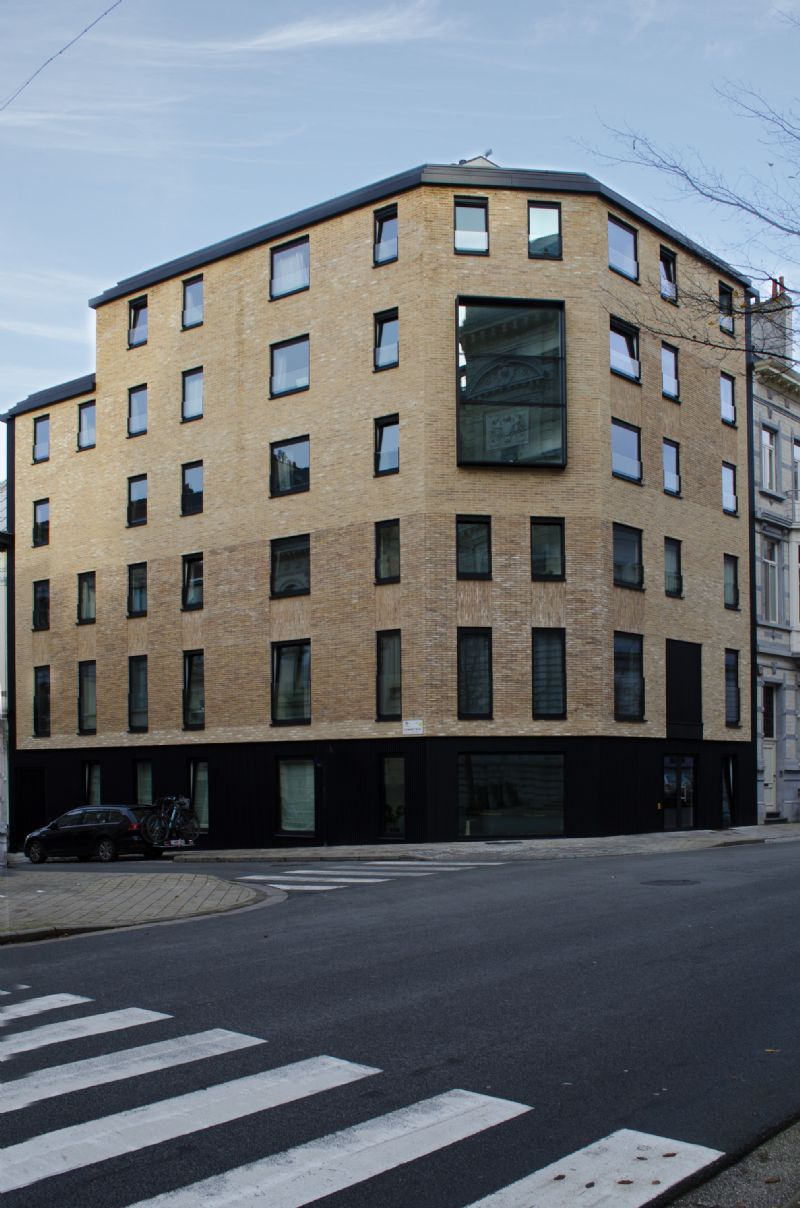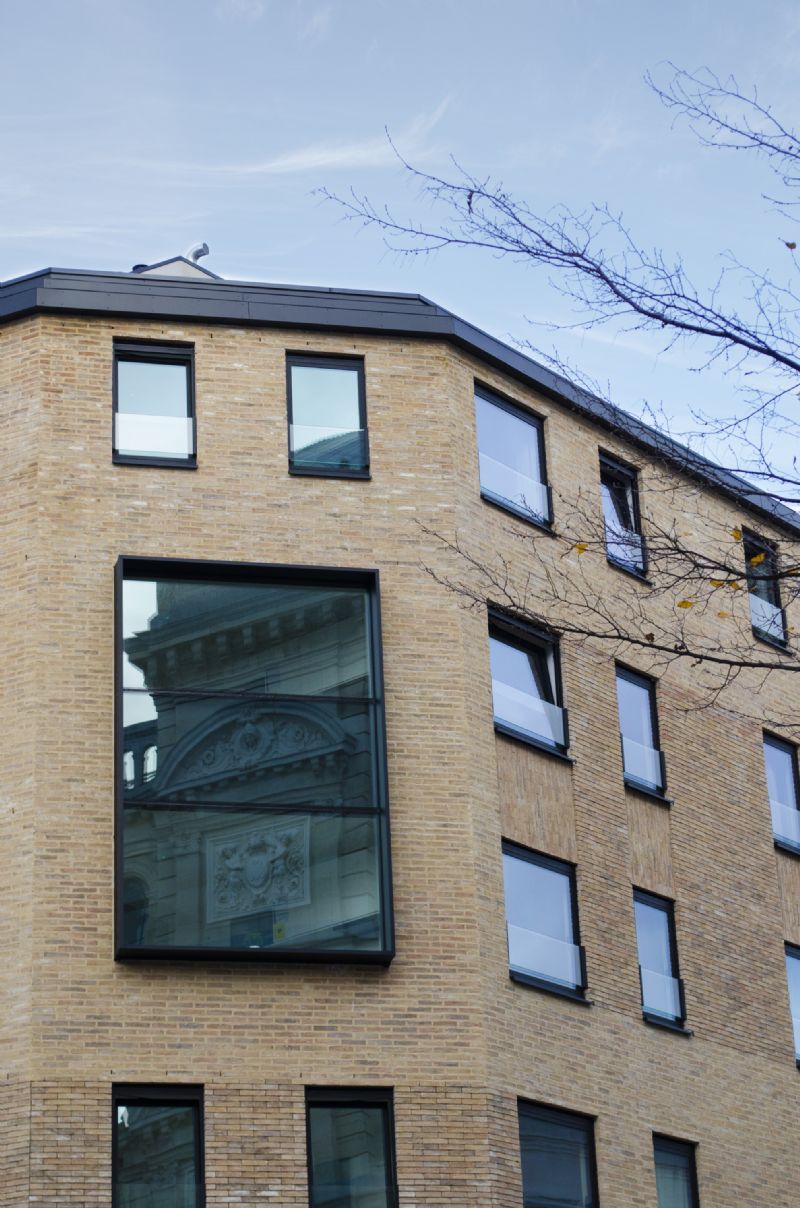 Cette maison pour étudiants comprend 55 chambres avec, à chaque étage, une cuisine et un espace de vie communautaires. Le bas du bâtiment est entièrement recouvert de bardage de façade Deco Wall. On a utilisé le mur-rideau MC Wall pour la grande fenêtre bloc. Pour les autres fenêtres, le choix s’est porté sur un Star 75 en raison de sa forme élégante et de l’isolation de haute qualité. Une protection antichute Mac Glass a été installée sur les fenêtres oscillo-battantes.