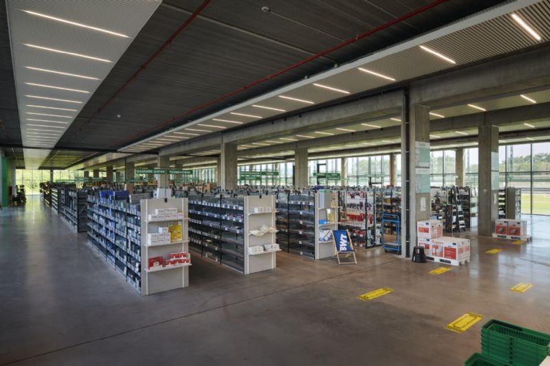 En novembre dernier, le plus grand showroom de FACQ en Belgique a ouvert ses portes le long de la E40 à Merelbeke. Ce projet, conçu par le bureau LAB Architects Boveroux Courtoy, vient finaliser l'ouverture complète du centre qui regroupe tous les services proposés par l’enseigne, pour une surface totale de 30 000 m² : un centre logistique, un service Collect & Go, un Contact Center et un Sanicenter.