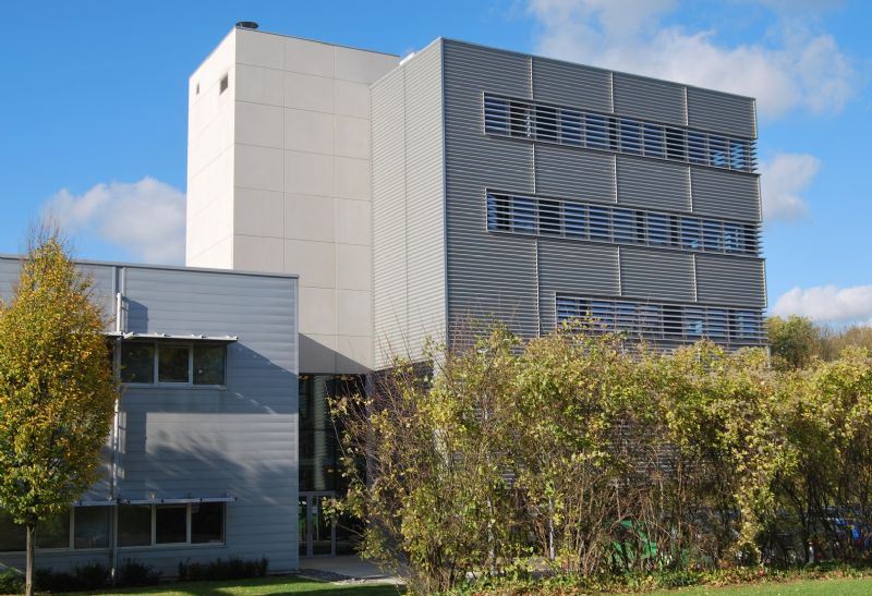 Le projet est implanté dans un site très boisé, légèrement en contrebas de la rue. Accès via une passerelle, pénétrant dans un grand hall circulaire, aux fonctions de show-room et réception, véritable « rotule » du projet.