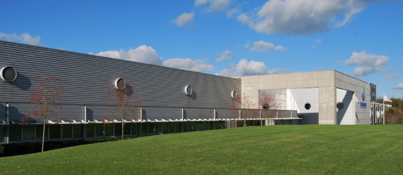 Le hall industriel comprend plusieurs zones (stockage, soudage, collage, meulage). Une zone de classes pratiques est en contact direct avec l’atelier. De part et d’autre de la rue, on retrouve les bureaux, la cafétéria, les salles de cours théoriques. La rue couverte est traitée comme un lieu de rencontre très lumineux avec vues plongeantes sur les ateliers.