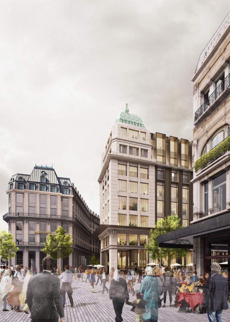 VDD Project Development et Vervoordt r.e., tous deux actifs dans la rénovation de sites d’intérêt historique, proposent avec le projet The DOME une ambitieuse revalorisation de l’ancien immeuble d’Actiris, qui va fortement contribuer à la revitalisation du cœur de la ville. La combinaison d’une architecture de qualité et d’une programmation attractive constitue un gage d’activation des Boulevards du centre.