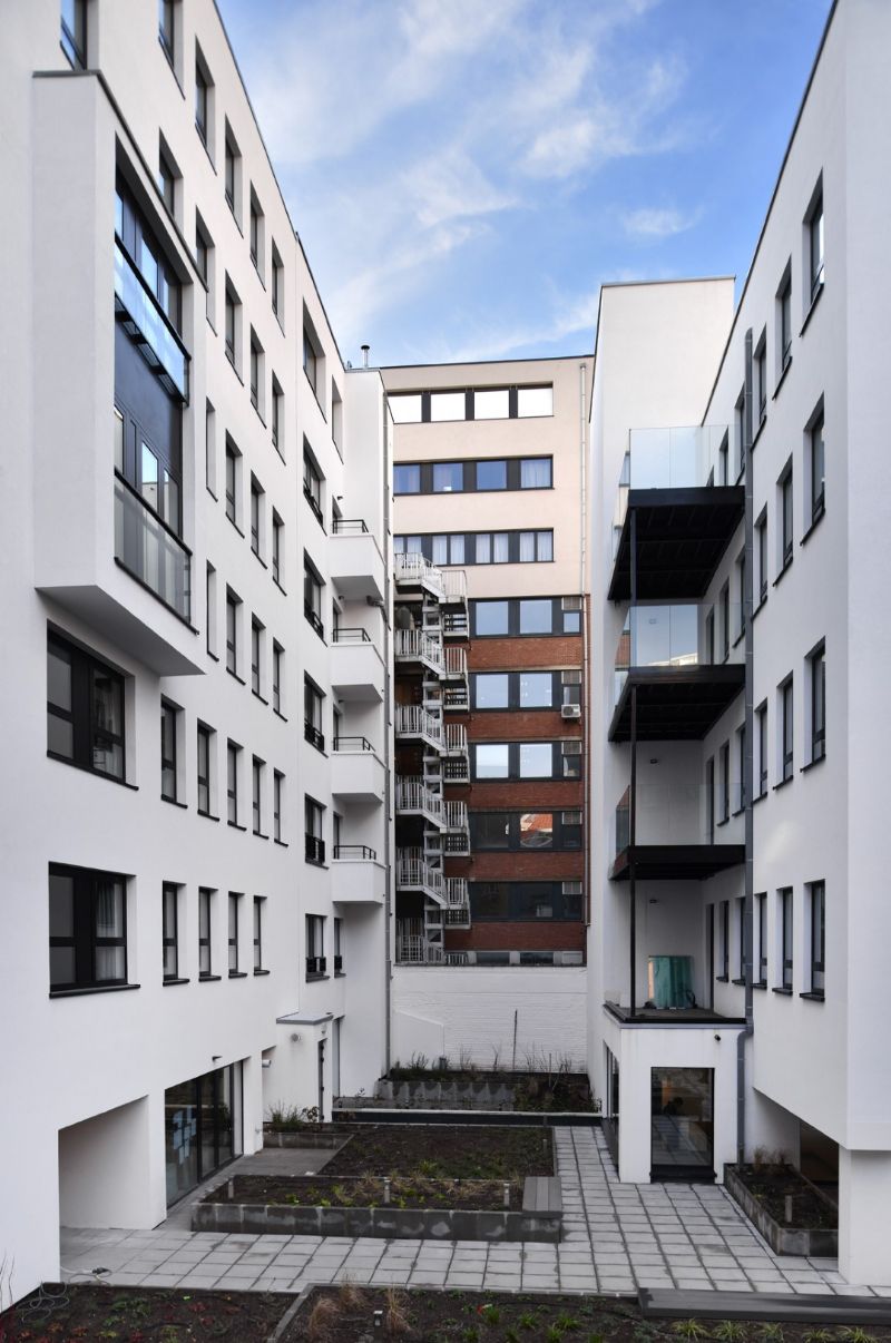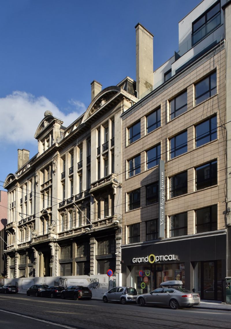 The Royal, c’est la reconversion réussie des bureaux de la société Van Hopplynus en logements mixtes et équilibrés. L’objectif des auteurs du projet était de recréer une dynamique de quartier par le réaménagement des immeubles existants.