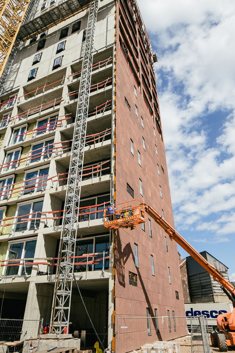 La totalité de la zone qui entoure la Vaartkom louvaniste était autrefois une zone industrielle abandonnée en grande partie qui, peu à peu, est en train de se transformer en un nouveau quartier rayonnant et écologique. Divers architectes de renom ont été amenés à collaborer à la réalisation de ce projet, dont le célèbre architecte Stéphane Beel. Après la « Balk van Beel », le premier bâtiment du quartier Tweewaters (= les deux eaux) et, en outre, le bâtiment résidentiel le plus durable d'Europe (certificat Breeam « outstanding »), le deuxième bâtiment de la main de cet architecte est réalisé à l'heure qu'il est. L'immeuble d’appartements d'une hauteur de 16 étages dénommé « de Twist » a été totalement habillé de panneaux isolants en mousse résolique Kooltherm K15 pour façade ventilée.
