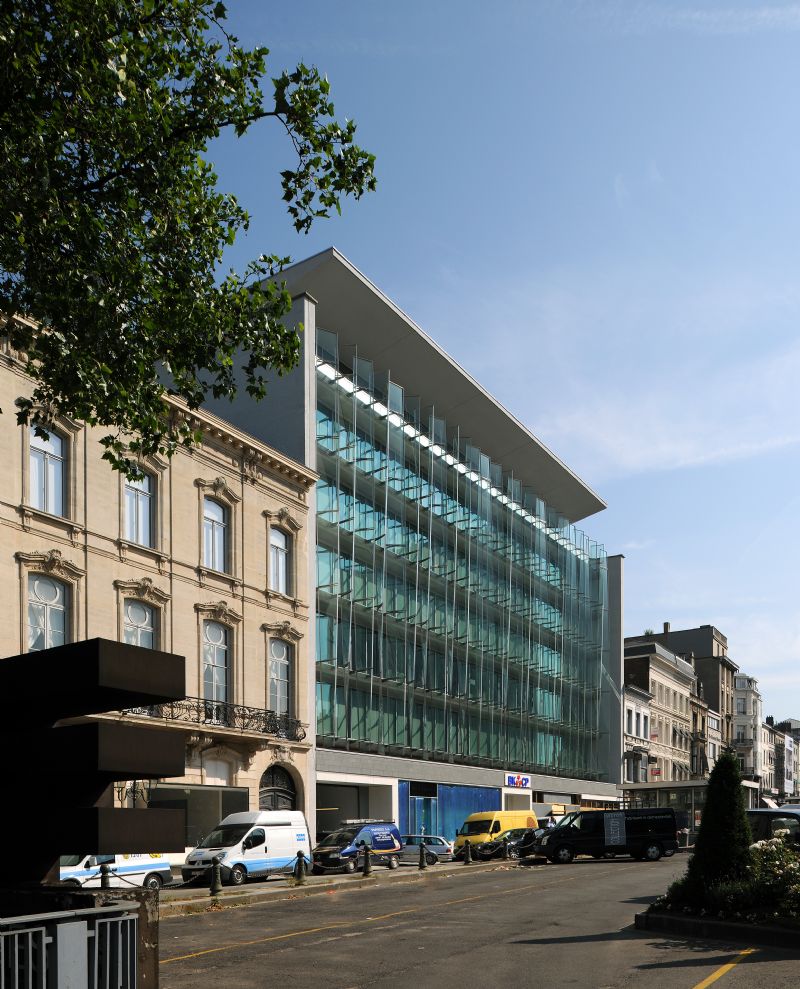 Le bâtiment, dessiné par Hugo van Kuyck et construit en 1958 pour la SNCI, est situé sur le boulevard de Waterloo, dans une zone commerciale réputée pour ses boutiques de luxe. Dans cette partie de la ville, le long de la "petite ceinture" où coule un flot continu de voitures, on passe dans différents vieux quartiers où alternent hôtels et centres commerciaux dans un puzzle multiculturel.
