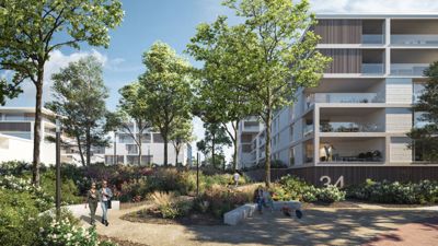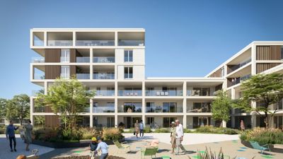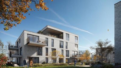 Architectenteam MaMu creëerde drie types woonbelevingen, weet architect Jeroen Maesen: “Ten eerste is er Parkview. Deze vier bouwblokken - met telkens 4 lagen - liggen wat lager op het projectdomein, in een groene oase. Het zijn betaalbare appartementen in een less is more-stijl. Hun beige-grijze gevels vloeien mooi over in de privatieve groene omgeving, waar kinderen veilig kunnen spelen.”