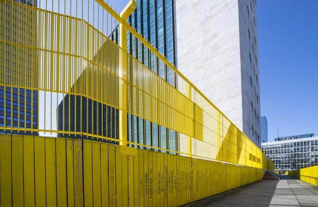 Linda van Vleuten van Opperclaes maakte een prachtig ontwerp van Tribar figuren, die werden geïntegreerd in een Tribar hekwerk en poort. De ontwerpers van ZUS ontwikkelden hier een mooi geheel van dat uiteindelijk heeft geresulteerd in een uniek hekwerk met geïntegreerde schuifpoort dat perfect past bij de loopbrug met een unieke kleurstelling met veel transparantie.