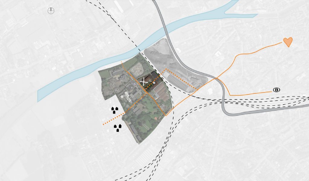 Onder de sporen tussen “Kortrijk weide” en de Campus wordt de aanleg van een tunnel gepland, toegankelijk voor voetgangers en fietsers. Hierdoor zal een nieuwe belangrijke as ontstaan, die dwars overheen het perceel loopt om dan aan te takken op de hoofdstraat van de Campus.