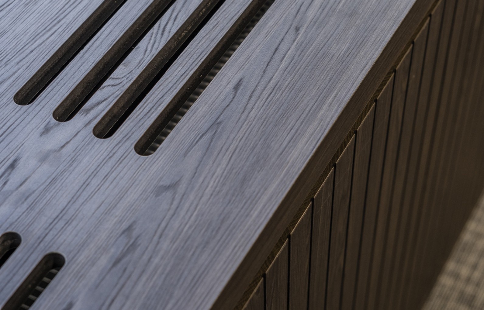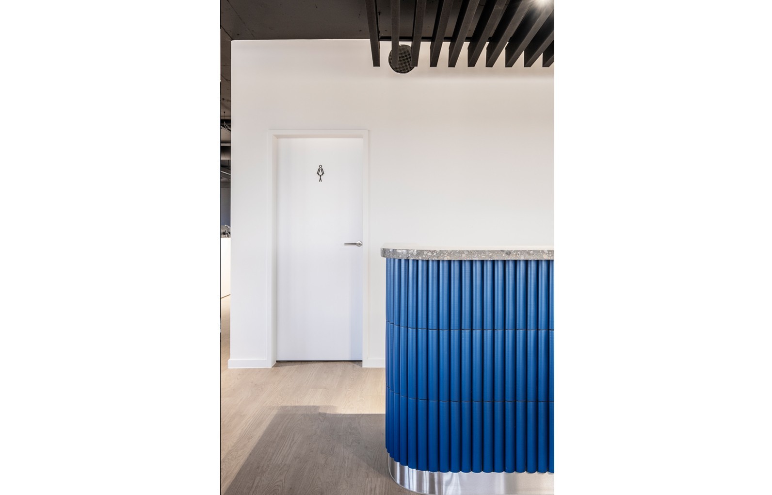 Akoestische baffles zijn als interieurelement verwerkt en zorgen voor een hoog comfort voor de gebruikers. De baffles zijn vervaardigd uit gerecyclede PET-flessen, wat een waardevolle bijdrage levert aan duurzaamheid binnen dit project. Vanaf de allereerste planningsfasen was DOX Merford nauw betrokken als akoestische partner, terwijl Concept A een op maat gemaakt ophangsysteem ontwikkelde voor de installatie van deze materialen.