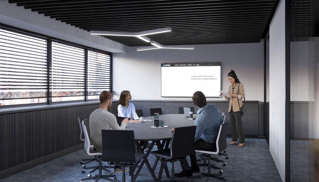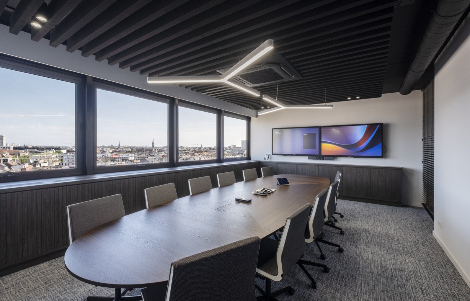 Het bedrijf Amadys, een leverancier van passieve apparatuur voor telecom, elektriciteit, water en gas, stelde het architectenbureau STAUT uit Boechout aan voor de renovatie van hun hoofdkantoor in Antwerpen. De architecten besloten een minimalistisch ontwerp te creëren dat naadloos aansluit bij het prachtige erfgoed van het pand waarin het kantoor zich bevindt. Om het akoestisch comfort te verbeteren, werd gekozen voor absorberende baffles. Die werden elegant geïntegreerd in het donkere interieur.