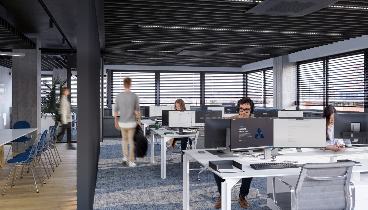 Absorberende baffles optimaliseren akoestisch comfort in minimalistische kantooromgeving (STAUT)