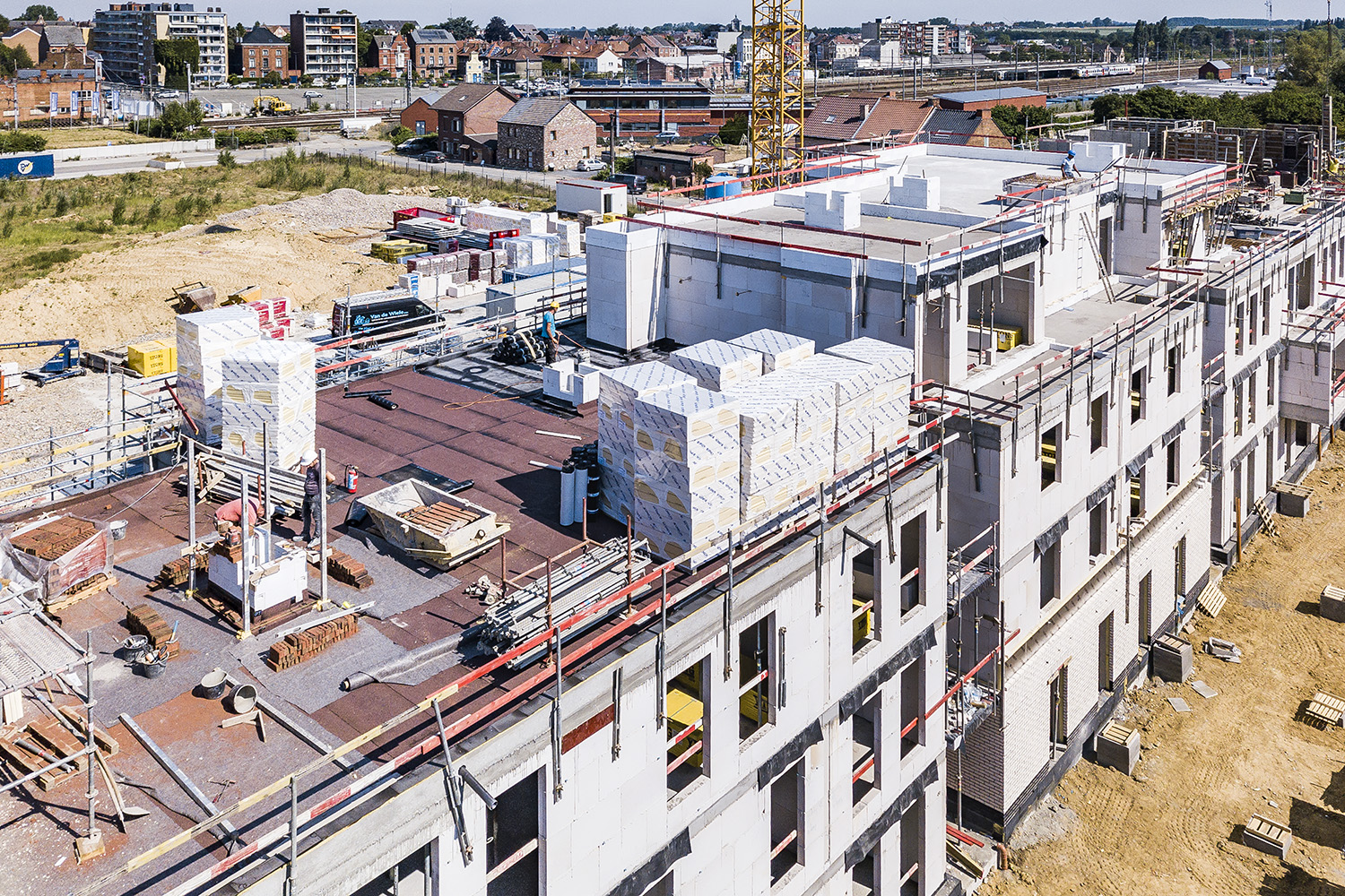 - Aangezien de betonlaag een vlak fundament biedt, is het isolatieluik van het project vrij vanzelfsprekend. Dat is zeker het geval bij grote projecten waar de aannemer de realisatie van de betonlaag integreert in de bouw van de constructie. De dakwerkers nemen dan enkel het plaatsen van de isolatie voor hun rekening.
