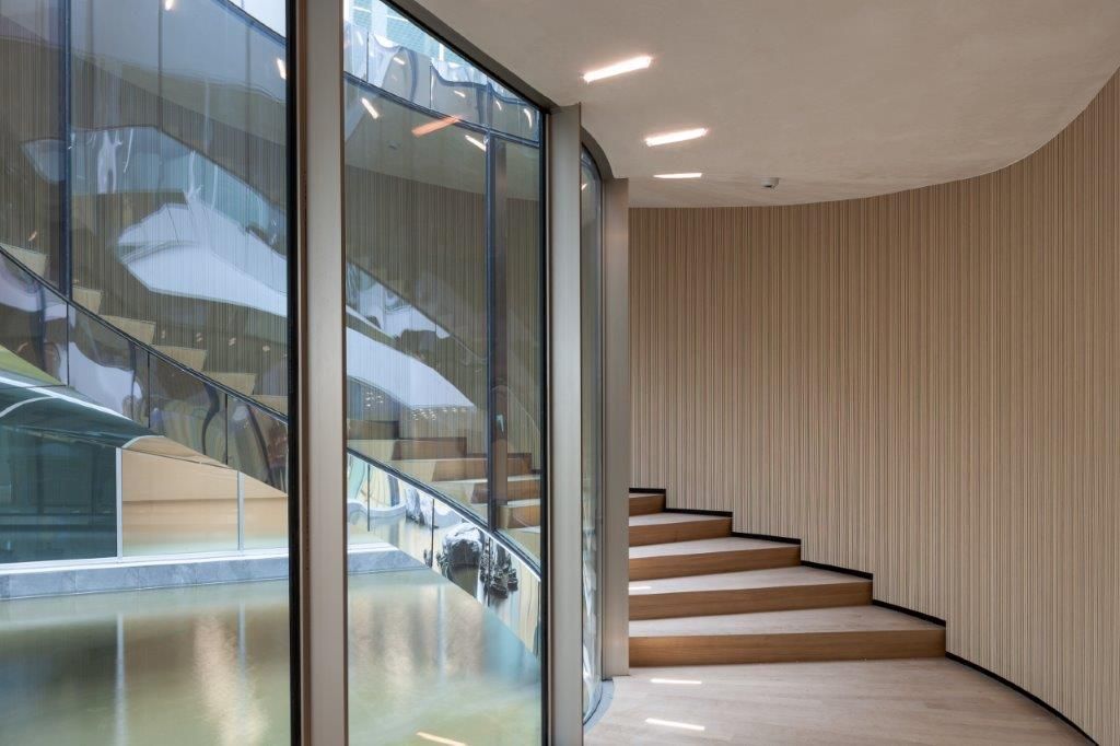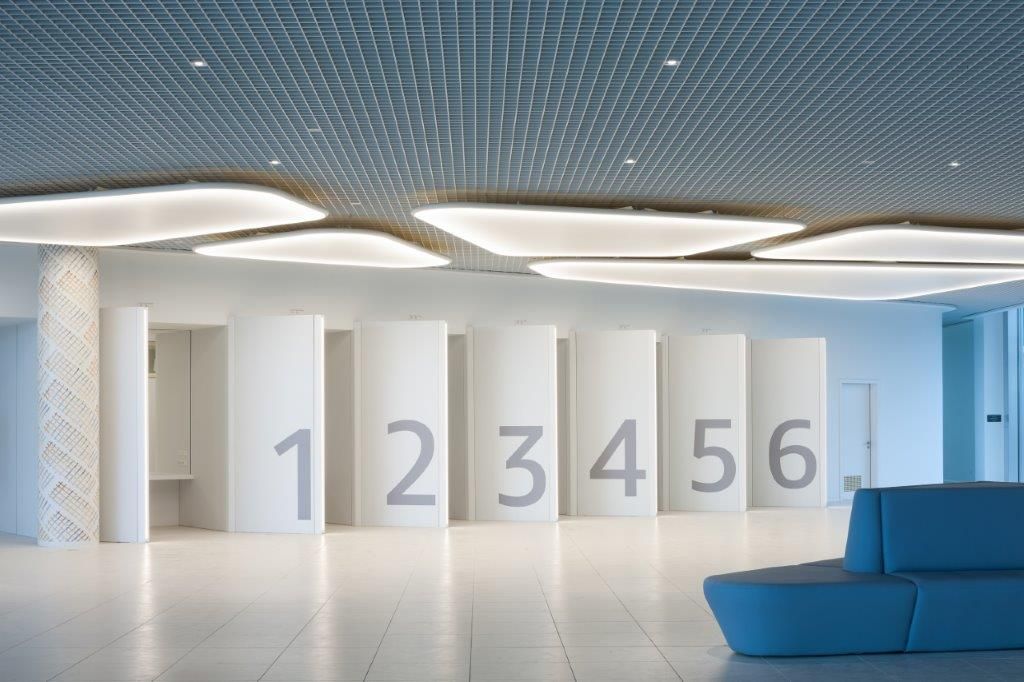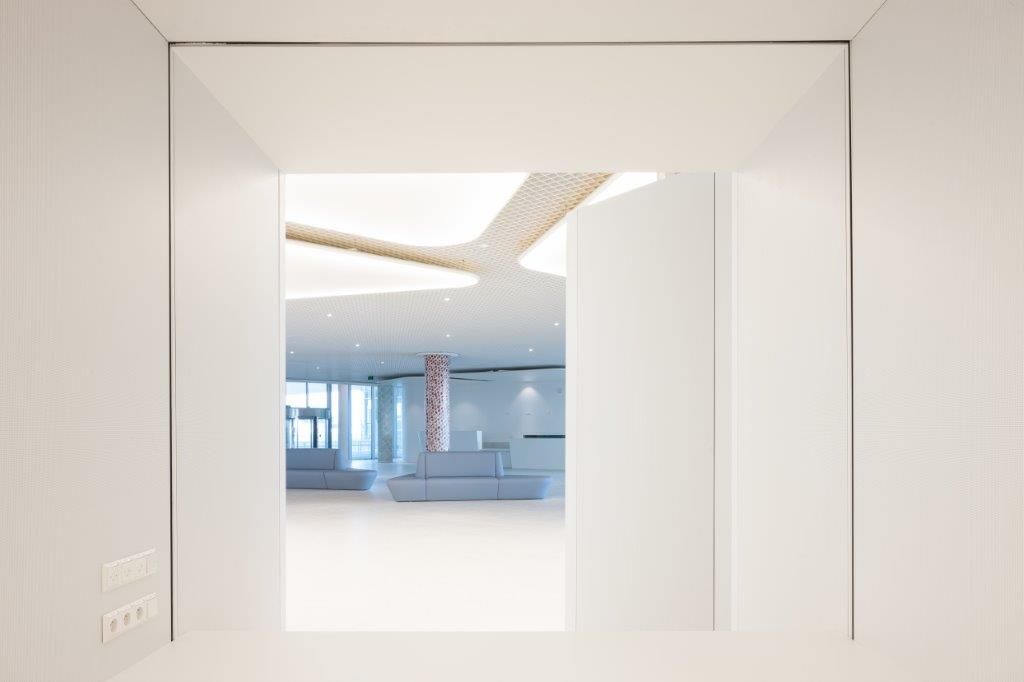 Het ziekenhuis voelt aan als een geruststellende en open zorgomgeving die inspirerend is. Het gebouw zweeft als het ware als een witte wolk boven het landschap.