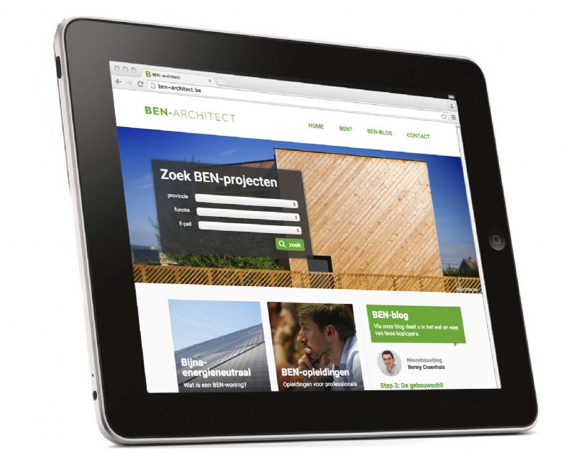 Op www.BEN-architect.be kunnen alle architecten die in Vlaanderen al BEN-woningen ontwerpen hun projecten gratis opladen. Naast een scala aan referentieprojecten bundelt de site ook de nodige informatie over bijna-energieneutraal bouwen.