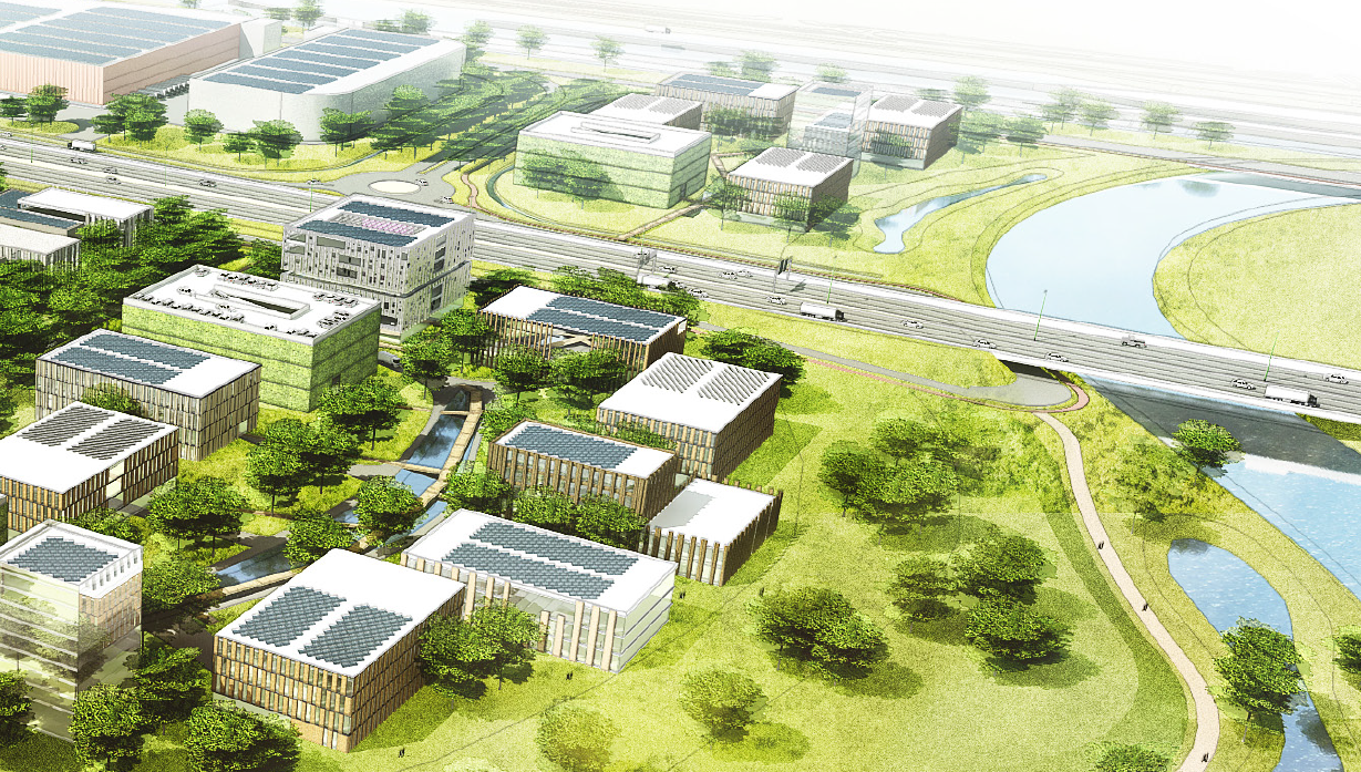 Het meest recente project is het parkgebouw op een gesaneerd terrein op datzelfde Gent Tech Lane, campus Eiland, dat POM Oost-Vlaanderen in een specifieke projectvennootschap samen met PMV, de UGent en sogent realiseert. “Dat gebouw met een bruto vloeroppervlak van 13.000 m², moet het kloppend hart worden van het bestaande bedrijventerrein. Het zal fungeren als aangename ontmoetingsplek voor de werknemers en bezoekers van het bedrijventerrein en over een open aanbod aan diensten, zoals een restaurant, vergaderruimtes en conferentiezalen beschikken, in combinatie met een eigen aanbod aan bedrijfsruimte”, legt An De Schryver uit. “Daarnaast zal het parkgebouw ook de zogenaamde CESPE Innovative Accelerator huisvesten, een flexibele open onderzoeks- en innovatieomgeving met onder meer chemische labo’s en farmaceutische cleanrooms. Het gaat om een opdracht van de soort Design, Build & Maintain die wordt gegund via een mededingingsprocedure met onderhandeling, die momenteel loopt, waarin verschillende gunningscriteria gestoeld zijn op principes van circulair bouwen.”