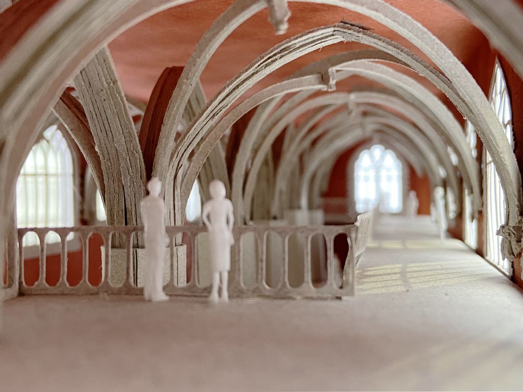 Langs drie zijden van de Stadshal komt een mezzanine. Op die mezzanine kunnen bezoekers de glasramen en gewelven van dichtbij bekijken waar ze kunnen genieten van het uitzicht op de stadshal enerzijds en de stad anderzijds. Onder de mezzanine worden topstukken van de museumcollectie veilig getoond.
