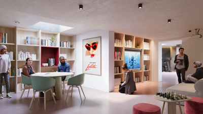 Naast de privékamers investeert Antonissen in royale gedeelde functies: high-end keukens, ontspanningszones met zicht op een groene binnentuin, een collectieve wasplaats en een ondergrondse fietsenstalling voor 116 rijwielen. Die ruimtes zijn zo gesitueerd dat ze spontane ontmoetingen stimuleren en een community-gevoel creëren.