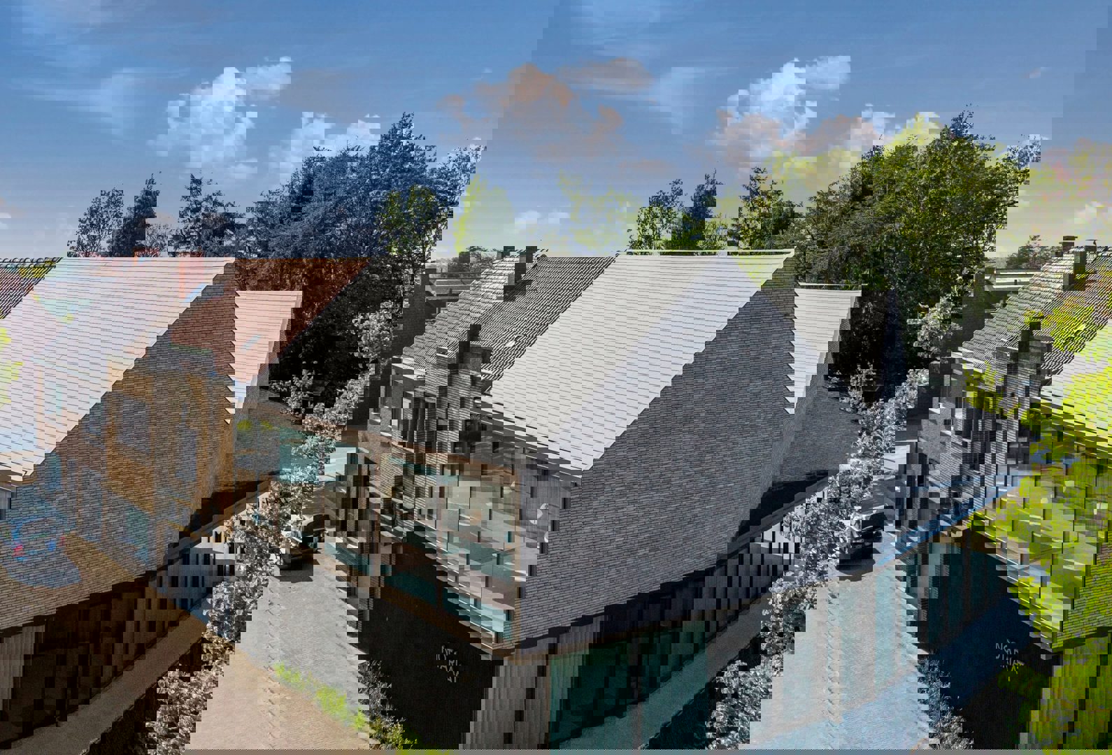 In Passendale realiseerde MARKland architecten een nieuw notariaatsgebouw met geïntegreerde woongelegenheid. Voor de dakafwerking werd gekozen voor de Koramic tegelpan Elfino in de kleur Agaatgrijs van wienerberger, een keuze die aansluit bij de architecturale ambities om een helder en zorgvuldig uitgewerkt volume te creëren.