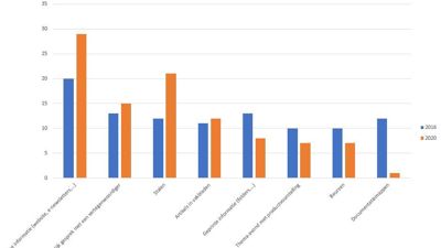 In vergelijking met de vorige enquête hadden we twee mogelijkheden toegevoegd: video en virtual of augmented reality. Die blijken echter nog niet zo populair te zijn bij architecten met respectievelijk 6 en 5%. We hebben deze resultaten eruit gefilterd om een goede vergelijking te kunnen maken tussen 2016 en 2020.