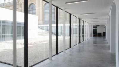 De slanke staalstructuur van het ontvangstpaviljoen kwam eerder al aan bod in het magazine Infosteel. De draagstructuur is onttrokken aan de beglaasde gevelvlakken en is opgevat als een serie van portaalframes met vloervelden van 9,9 meter. “De draagstructuur is hoofdzakelijk opgebouwd uit HEB- en HEM-liggers van de zwaardere soort (400 tot 700). Voorts omvat hij ook een reeks HD-liggers, enkele uit plaat samengestelde kolommen, staalplaatbetonvloeren, hoekstaal voor de oplegging van vloeren en standaardkokers ... Het gaat telkens om brandwerend wit geschilderd S355-staal”, vertelt Ronny Loos, commercieel directeur bij CSM. CSM leverde en monteerde niet alleen het staalskelet van het onthaalpaviljoen, maar ook de stalen onderdelen in het bestaande museumgebouw (stalen vloeren, liftschacht …) en de verdiepte binnenkoer van het museum.