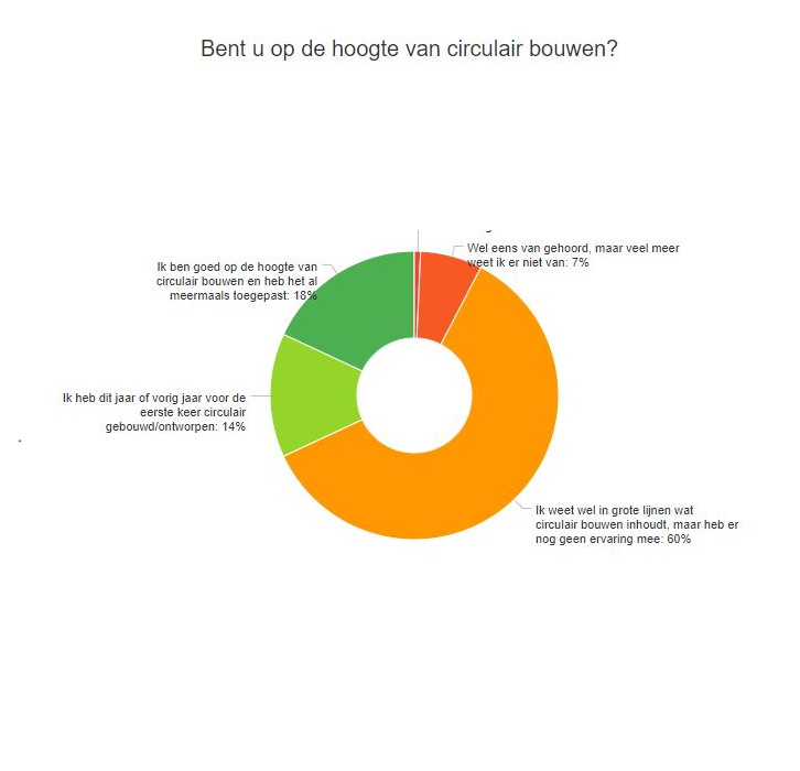 60% van de architecten heeft nog geen ervaring met circulair bouwen, maar beweert toch de grote principes onder de knie te hebben. Slechts 7% moet toegeven dat hij er wel eens van gehoord heeft maar er weinig of niets over afweet.