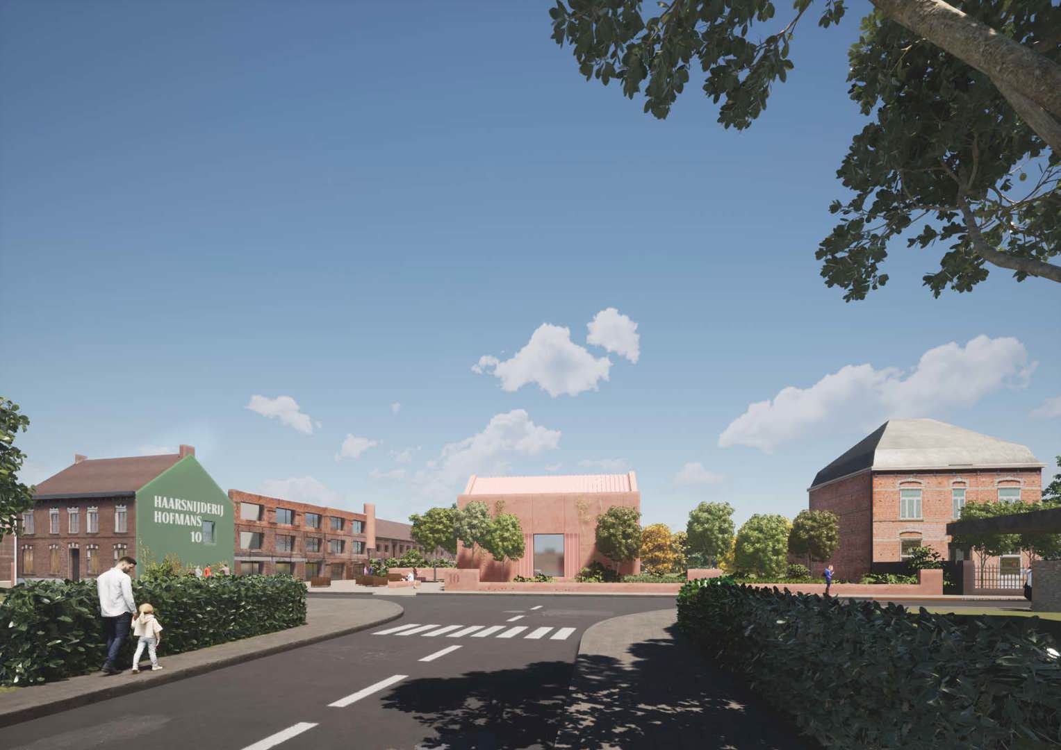 De voormalige Haarsnijderij Hofmans in Lebbeke wordt omgevormd tot een plek waar wonen en nevenfuncties samenkomen rond een semipublieke buitenruimte. Architectslab benadert de site in de Heizijdestraat niet als een standaard verkaveling, maar als een omgevingsontwikkeling waarbij de industriële historiek de drager is. Het project zet in op een erfgoed-evocatie om het ambacht van de haarsnijderij visueel aanwezig te houden op de site. Door de oorspronkelijke gebouwen als vertrekpunt te nemen, blijft de identiteit van de fabriek bewaard voor de buurt. De integratie van verschillende functies zorgt ervoor dat de site opnieuw een actieve rol krijgt in de omgeving.