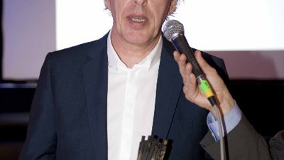 Jo Taillieu neemt namens De Vylder-Vinck-Taillieu de prijs van de vakjury in ontvangst (foto: Saartje Van de Steene)