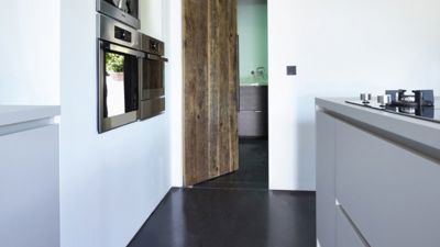Van deurlijsten is er dus al langer geen sprake meer, en scharnieren en geleiders zijn niet langer zichtbaar. Restten nog de plinten als laatste obstakel voor een perfect strakke wand. Maar daar heeft ARLU een oplossing voor. De onzichtbare plinten zijn verkrijgbaar in 2 modellen: een dunne kleefplint en een verzonken plint waartegen gepleisterd kan worden. Achteraan zijn die voorzien van lijmgroeven en een zwaluwstaart profilering voor een goede hechting. Een laag primer zorgt ervoor dat je die rechtstreeks met de muur mee kan schilderen.