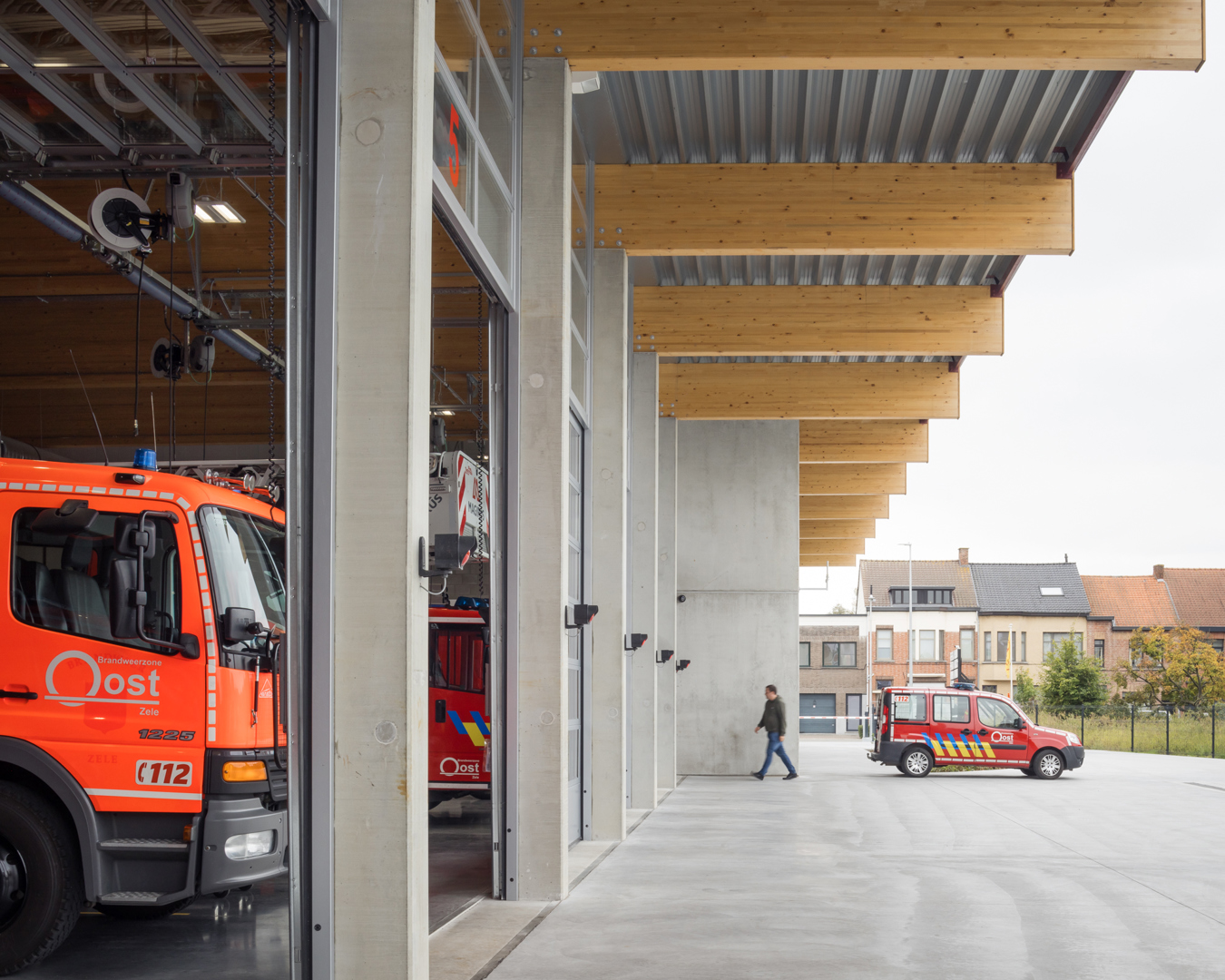 De nieuwe brandweerkazerne en ambulancedienst van Zele is ontworpen als een antwoord op de logica die wordt gehanteerd door de interventiediensten. Het ontwerp van architectenbureau ATAMA vervangt de verouderde faciliteiten aan de Poststraat die niet langer geschikt waren om de huidige vloot te huisvesten. De nieuwbouw is gesitueerd op de vroegere site van Friswit aan de Dendermondebaan, een locatie die de bereikbaarheid van het Zeelse grondgebied en de uitruktijden waarborgt.