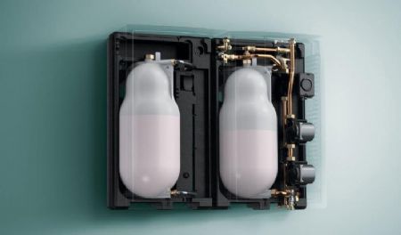Het nieuwe leegloop systeem van Vaillant omvat, naast één of meerdere auroFLOW plus-modules, ook drukloze thermische zonnepanelen auroTHERM classic 135 VD, een buffervat allSTOR plus of allSTOR exclusiv en een of meerdere ketels voor de bijverwarming.