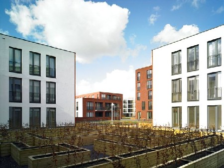 De schepenhof is een appartementencomplex van 4 bouwdelen die met elkaar in verbinding staan met binnenpleinen, gelegen op het dak van de parkeergarage, die het hart van het complex vormt als ontmoetings-, verblijfs- en speelruimte.
