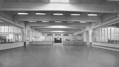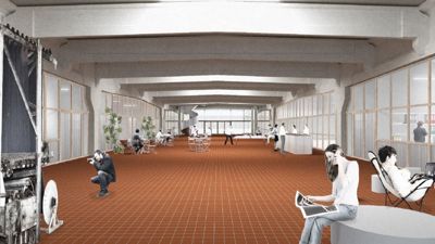Een nieuwe centrale publieke binnenstraat rijgt alle functies aan elkaar en verbindt de originele hoofdingang met de tegenoverliggende nieuwe toegang. De binnenstraat vormt samen met de twee dwarse secundaire assen de ruggengraat van het gebouw. Op het kruispunt van de assen bevinden zich de gemeenschappelijke functies. De ruimtelijkheid van de oorspronkelijke inkomhal wordt hersteld en over de volledige diepte van het gebouw doorgetrokken. Een compact kantoorvolume bovenop het gebouw markeert de nieuwe inkom.