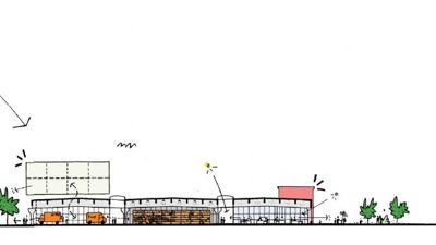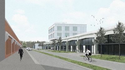 De centrale binnenstraat met zijn secundaire assen maakt het gebouw opnieuw leesbaar en verbindt zowel diverse functies als gebruikers. De gevraagde oppervlaktes worden maximaal voorzien binnen het bestaande gebouw. De noodzakelijke uitbreiding beperkt zich tot een compact accentvolume boven de nieuwe inkom. Een zuidoost gerichte colonnade ontstaat door het toevoegen van een transparante gevel achter de bestaande betonstructuur. De relatie met de overliggende hal van het in twee verdeelde fabrieksgebouw blijft bewaard.