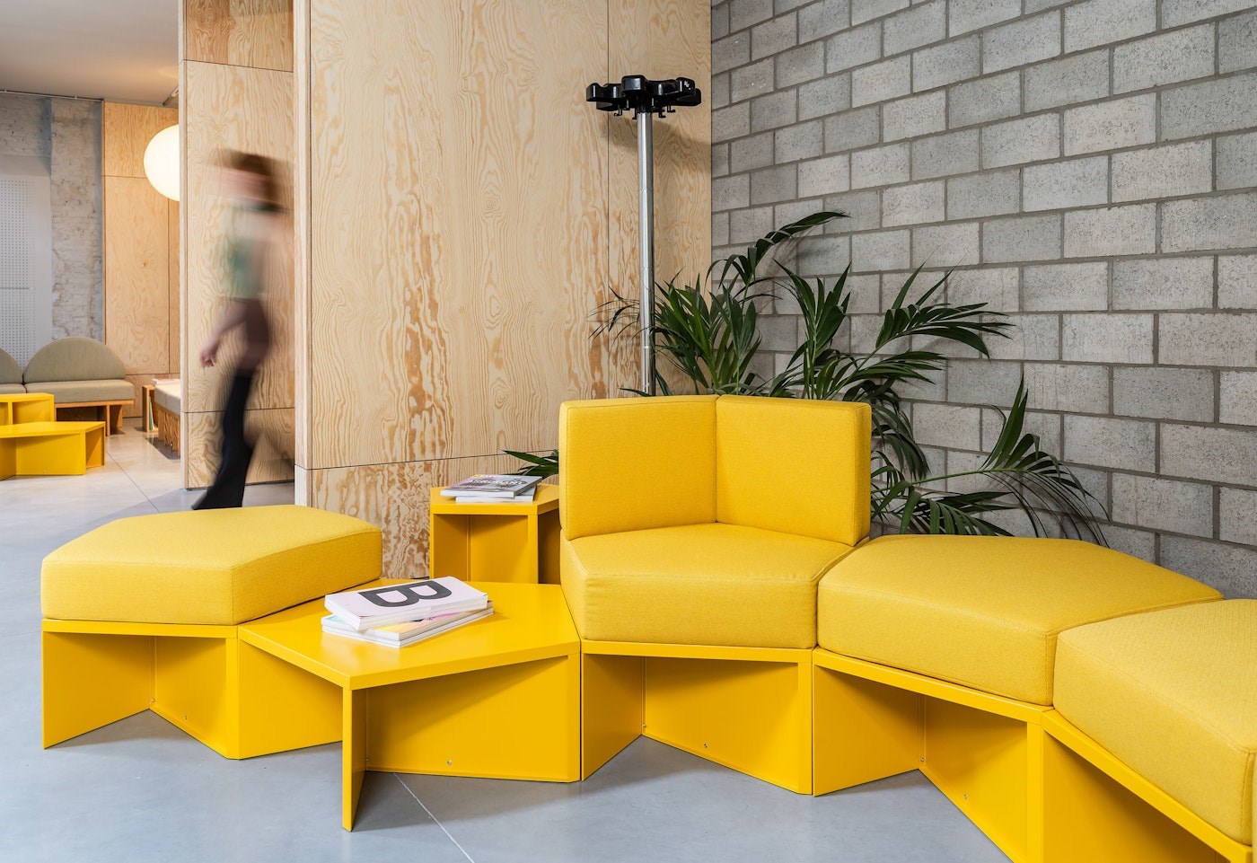 Met Penta ontwierp het bureau B-architecten een flexibele meubelcollectie geïnspireerd op de geometrische vorm van de vijfhoek. De tafels, krukken en banken maken opstellingen op maat mogelijk, geschikt voor diverse soorten ruimtes. Recent paste het architectenbureau de collectie toe in het interieur van haar nieuwe uitvalsbasis in Antwerpen, de B-cinema. Het resultaat illustreert meteen de veelzijdigheid van dit modulaire ontwerp.