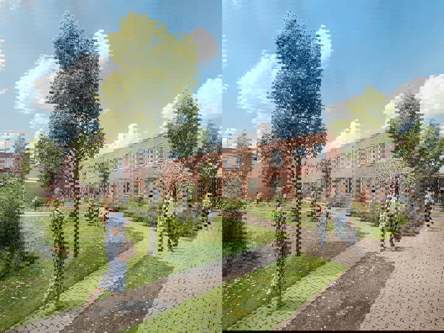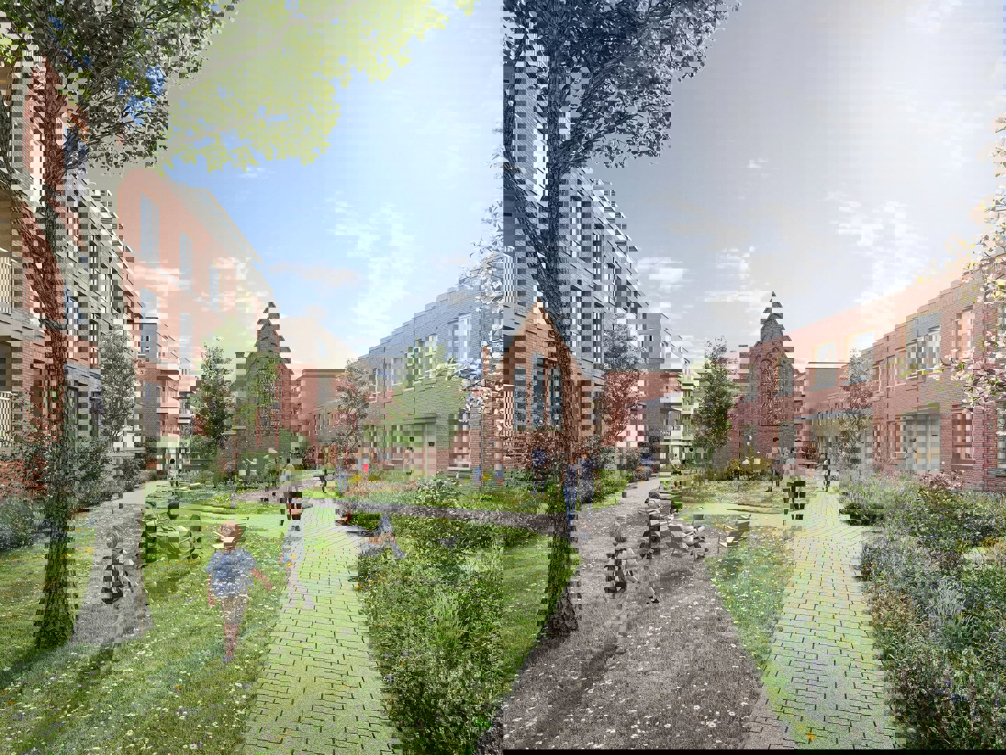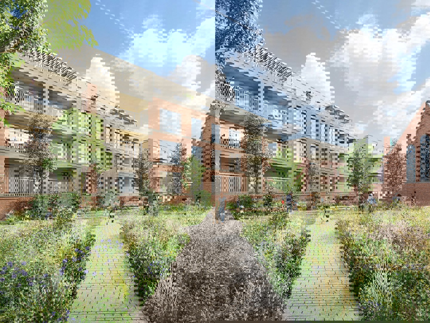De buitenruimte, ontworpen in samenwerking met OKRA landschapsarchitecten, vormt een landschap waar wonen en natuur samenkomen. De buurt is opgebouwd rond parkzones en collectieve tuinen die rustpunten bieden in de stedelijke kern. Door de private woningen direct te koppelen aan deze kwalitatieve buitenruimte, ontstaat een overzichtelijke site waar woonkwaliteit en bereikbaarheid hand in hand gaan.
