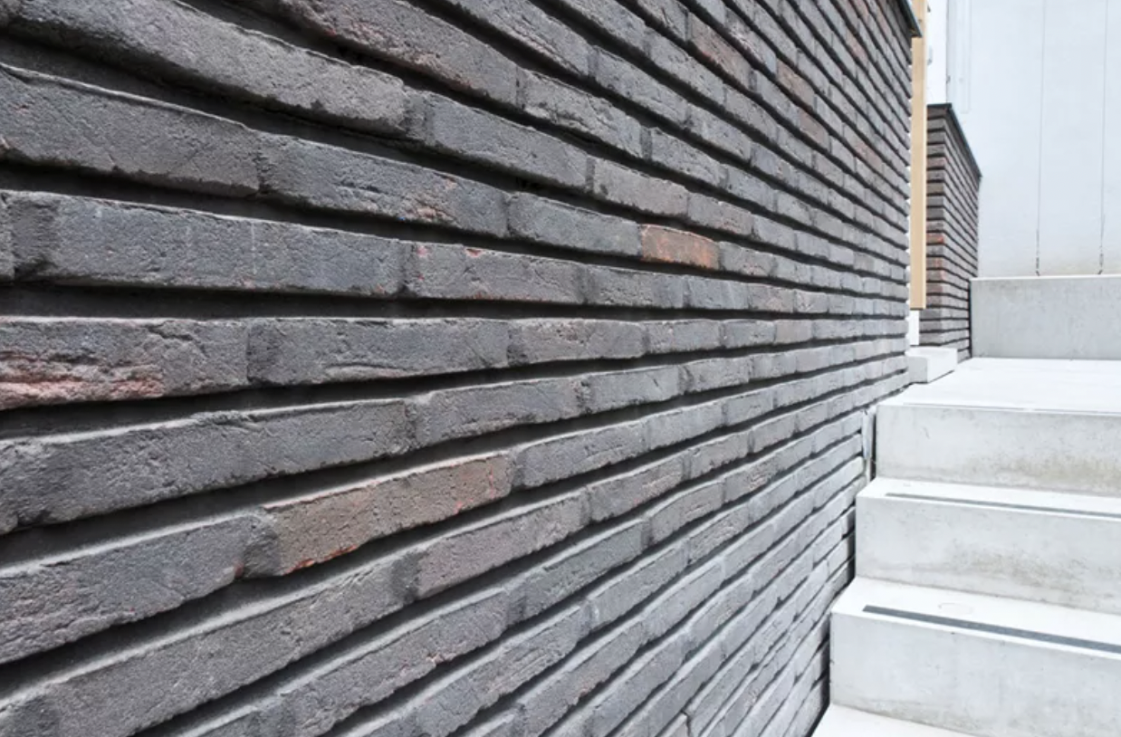 Het sociale huisvestingsproject Huidevetters in Brussel kreeg een lange, dunne linea gevelsteen van Vande Moortel met terugliggende voeg, deze benadrukt lineariteit.
