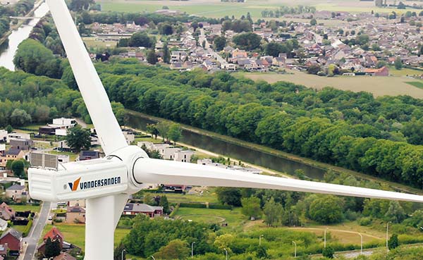 In november 2021 startte Vandersanden met de voorbereidende werken op zijn terrein voor de plaatsing van de windturbine. Alle bouwelementen, zoals de mastdelen en rotorbladen, zijn in de loop van april geleverd en begin mei werd de opbouw volledig afgerond. Momenteel zijn de elektrische werken bezig en wordt de aansluiting van de windturbine op het elektriciteitsnet voorbereid.