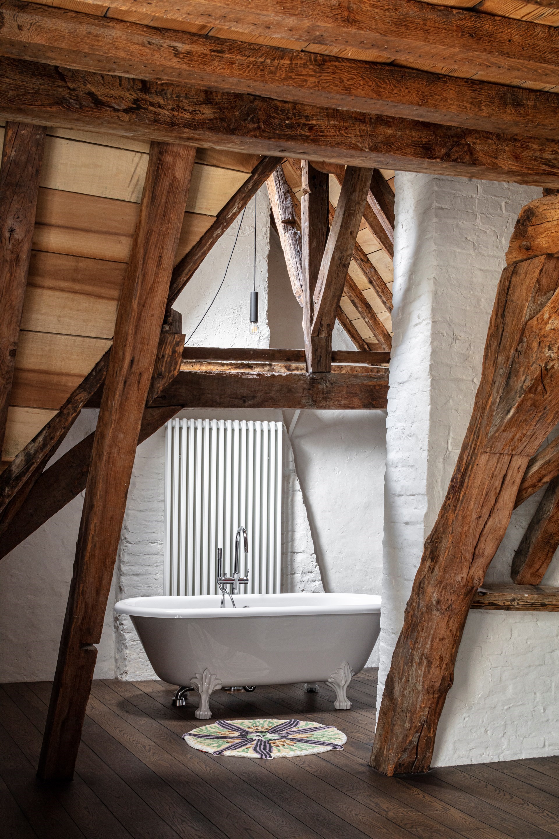 Op die manier zijn alle hedendaagse technieken geïntegreerd. De leidingen verlopen op de oude vloeren, en de nieuwe vloeropbouw met vloerverwarming zorgt voor het nodige comfort. Het gigantische dak werd naar buiten toe uitgedikt en geïsoleerd, en waar mogelijk werden de gevels nageïsoleerd. De woning bevat een warmtepomp, een ventilatiesysteem D, en een E-peil vergelijkbaar met een hedendaagse nieuwbouwwoning. Door het maximale behoud was er ook maar een minimum aan nieuwe materialen nodig om dit project te realiseren. Bovendien zijn alle materialen volledig recycleerbaar. “Met beperkte ingrepen behaalden we hier een maximaal resultaat”, besluit atelier vens vanbelle.