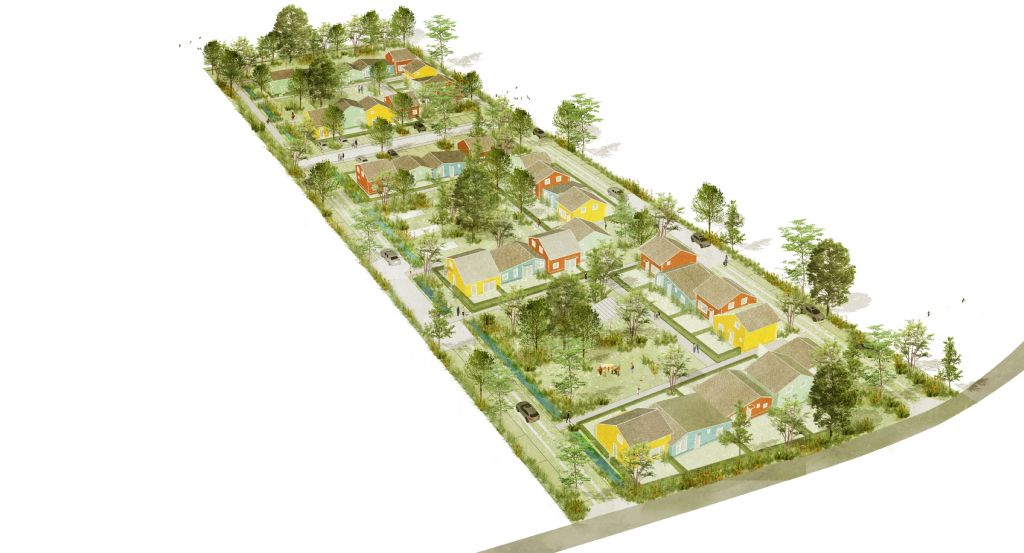 Overal Architectuur opteert om een bos te maken met woningen, in plaats van een verkaveling met bomen. De woningclusters planten ze zo in dat er maximale buitenruimte behouden blijft om te bebossen. Ze zullen circulair bouwen en zijn ervan overtuigd dat dat de tijdloze oplossing is, in die zin dat het bos er is voor de eeuwigheid, maar de woningen niet.